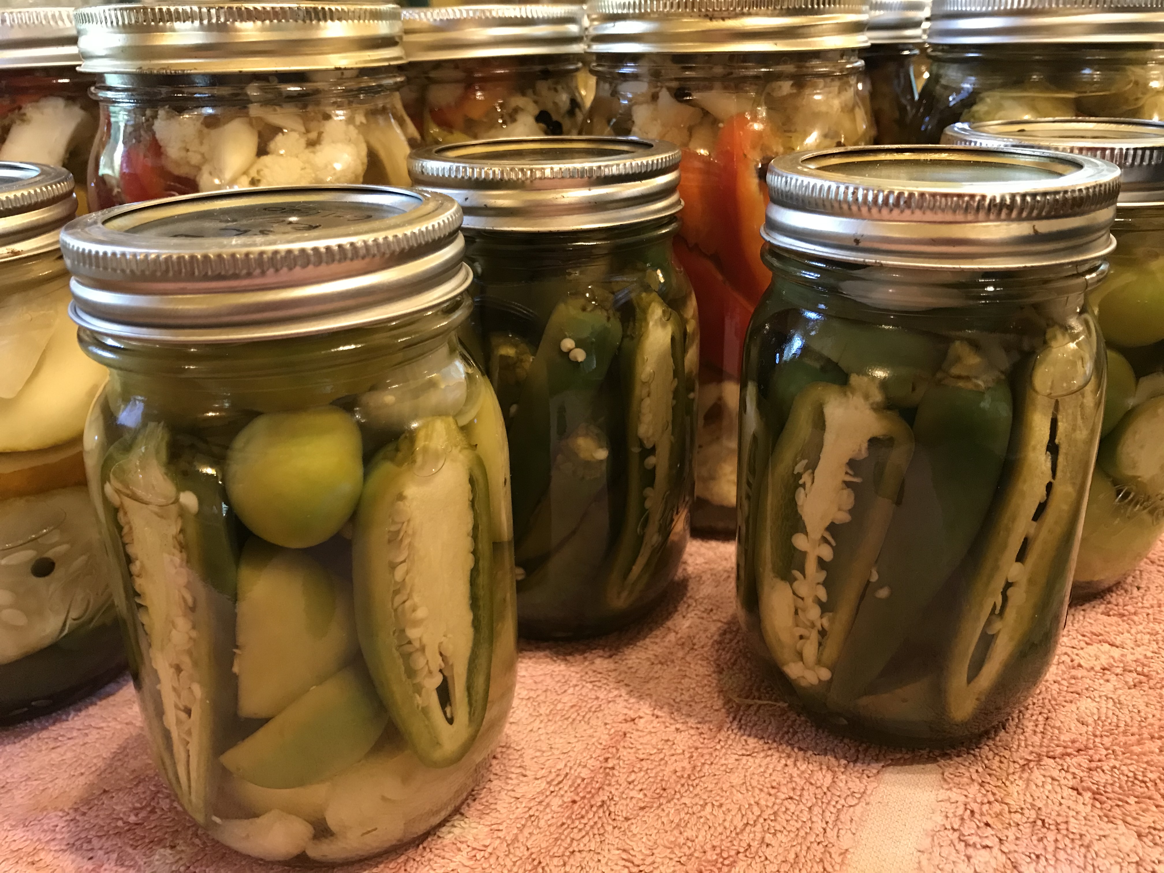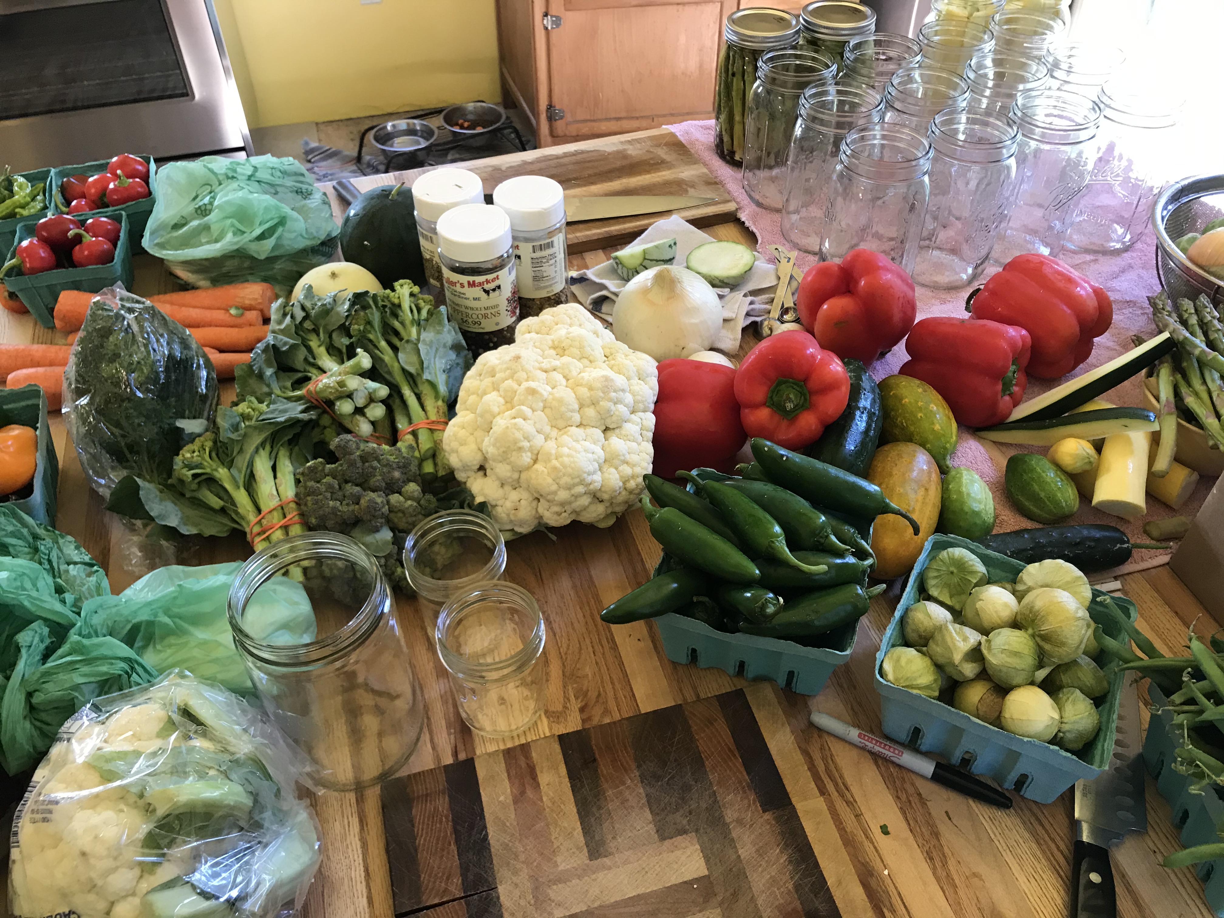 Not much changes in a mere week around here – snail changes. The blackberries might have one more dedicated pick in them, juniper berries are ripening (we found a cute little patch in the back), our apples are few this year but tell us it is time to go ‘country apple picking’ (finding random apple trees with the back of the pick up and a tarp that need a good shake), the potatoes are being dug up little by little (3 more rows to go!), the late tomatoes are still growing, as well as the Summer squash, the Marfax/Kenearly/Black beans are drying, the garlic is curing, the calendula and sunflowers are still blooming, and the chicken harvest is Friday. Meanwhile, I’m drying herbs and flowers for Winter teas, Josh is canning pickles of every shape/size/color and making jams, and we’re eating late Summer corn around here like it’s going out of style!