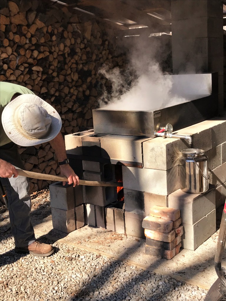A welcome warm spell has brought some unintended hurry to our maple sugaring process – normally what gets done in a few weeks has to happen in essentially one week. Though we did start late this year (setbacks abound) we might finish ‘on time’. Josh drew the first delicious syrup yesterday. Fortunately the nights are cool enough to offset the warmth of the days (too warm and not only will the sap stop flowing, but the sap we have in 55 gallon drums will sour before we can get to boiling it) as long as Josh keeps up with the process (and bakes, delivers, collects sap, etc). It is a dawn to past dusk process.