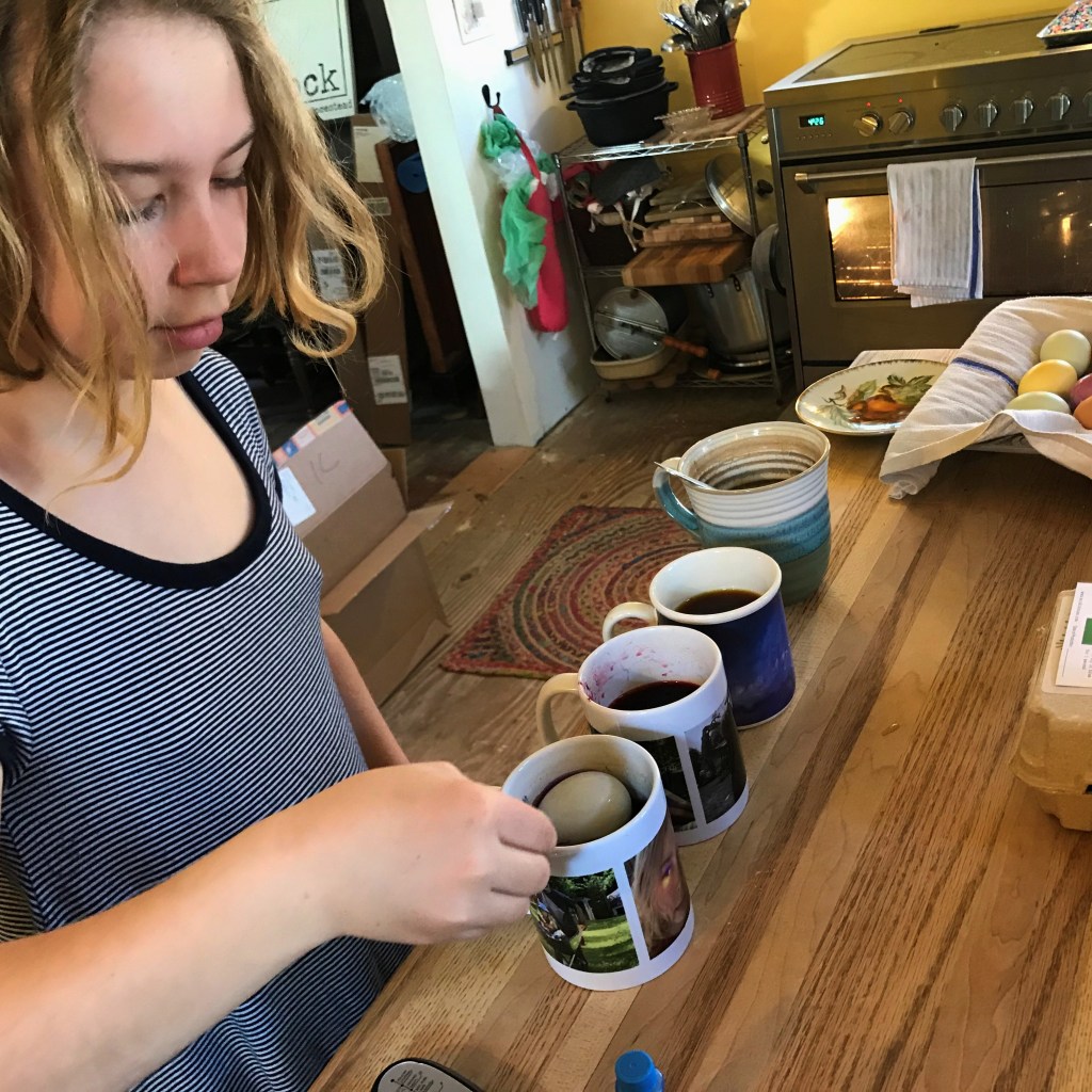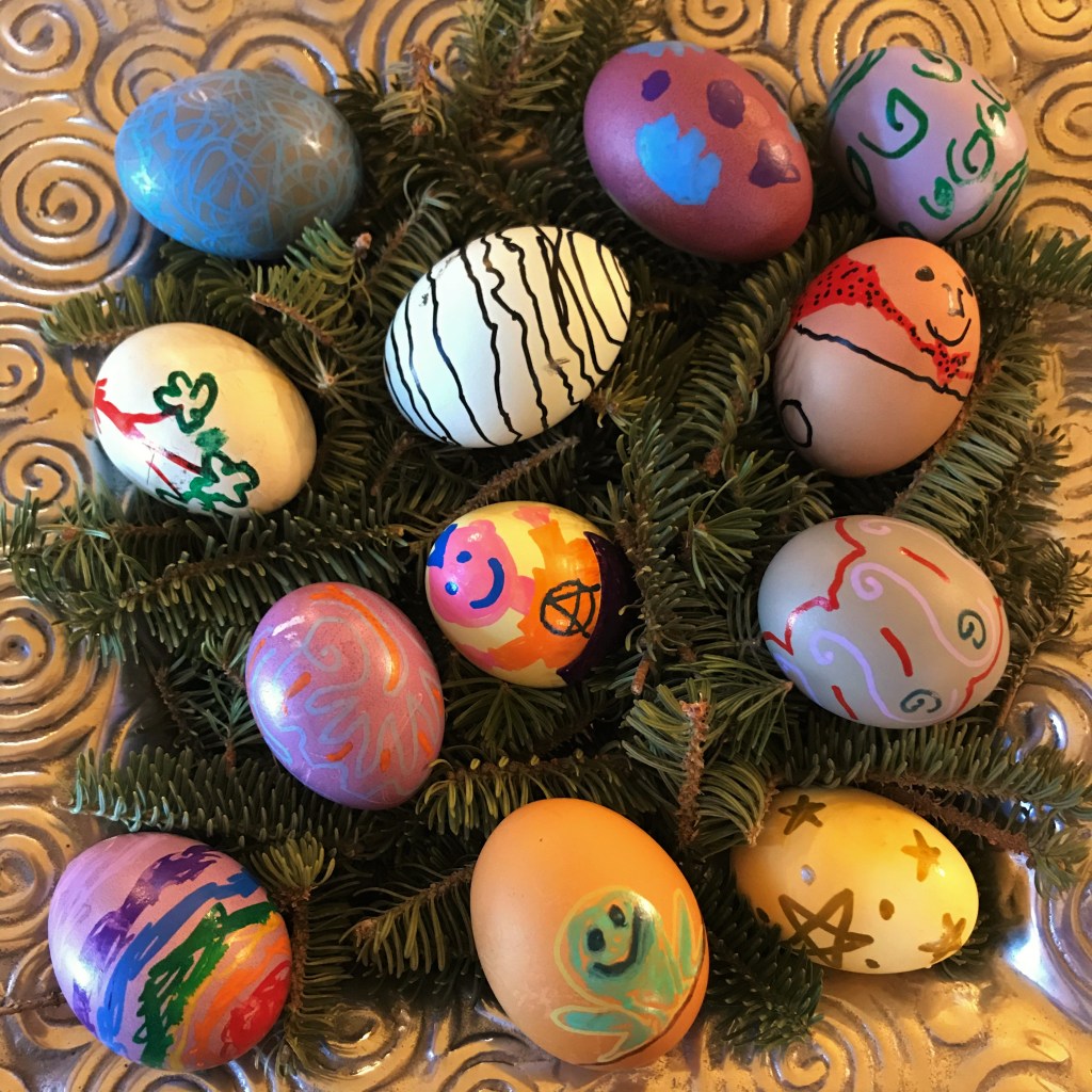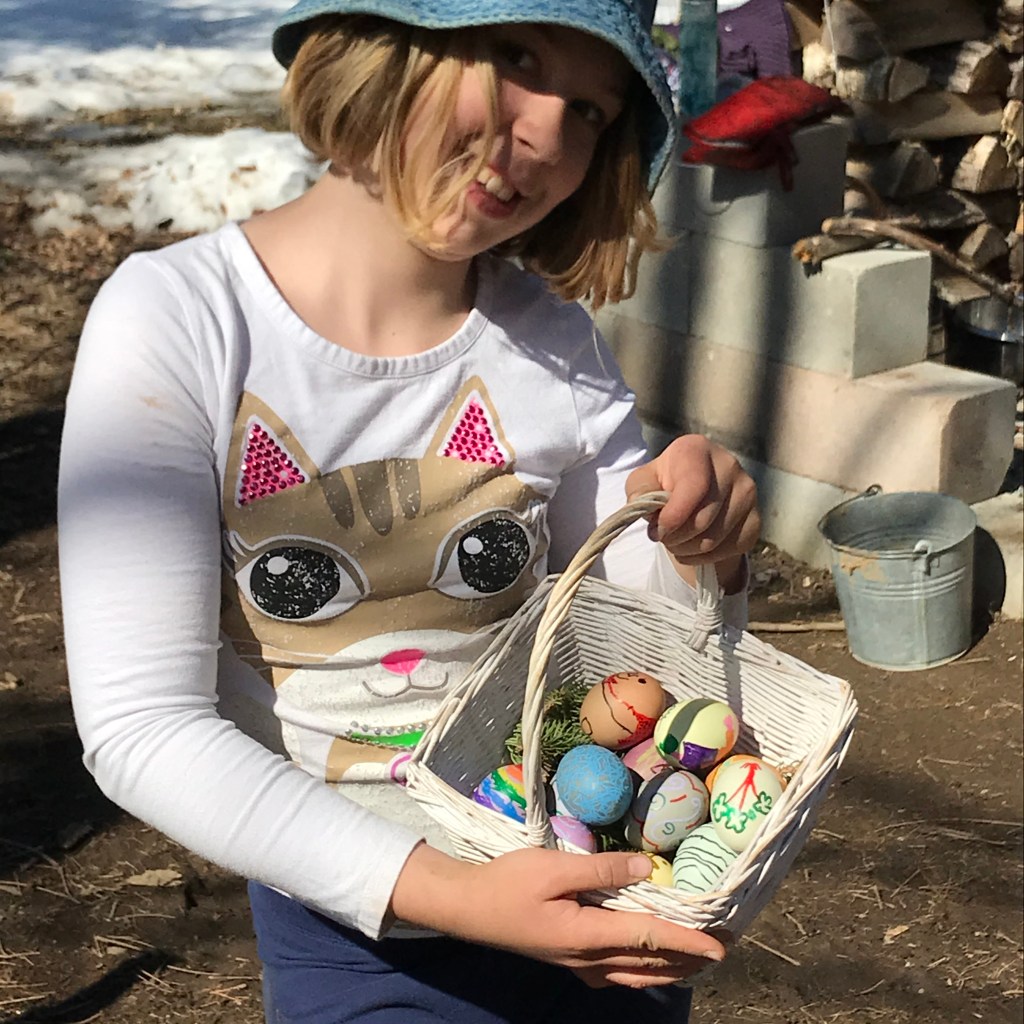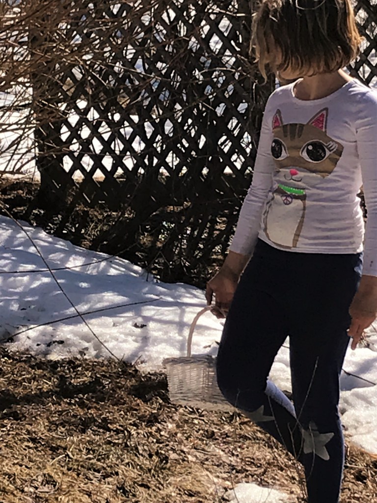 Ever since she was a small pea Duende has loved to hunt for things – and eggs for Spring is a special treat. Most of her egg-searching career has been inside our various homes because this is Maine and outside is generally covered in snow during the Vernal Equinox. She doesn’t just search once, she has us hide them again and again (one year she hid them from herself and couldn’t find them! I think the year before last her and her friend Pear hid them from each other and spent the afternoon searching…too funny). This year she had an inside (because after decorating them she just couldn’t wait) and an outside search (multiple on both).