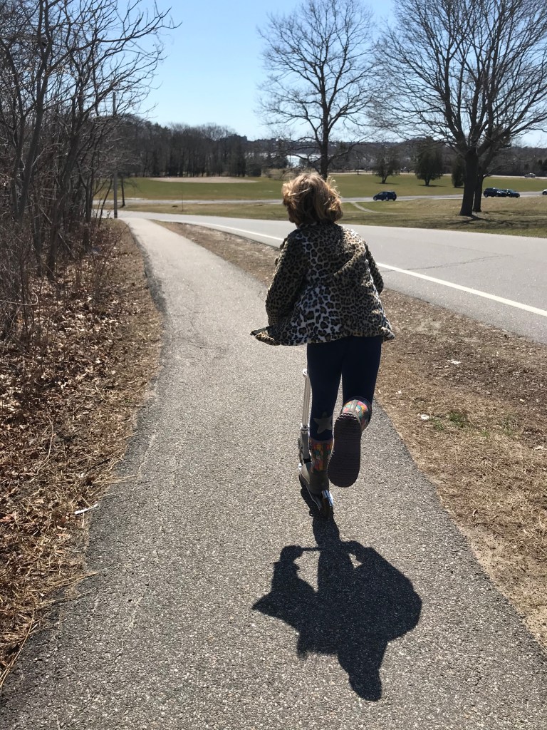 Duende loves Spring. She’s happy to have the sunshine and longer days. Running around to see what the creek is doing this time of year, doing hula hoop tricks, even trying to ride her bike on the firmer ground.