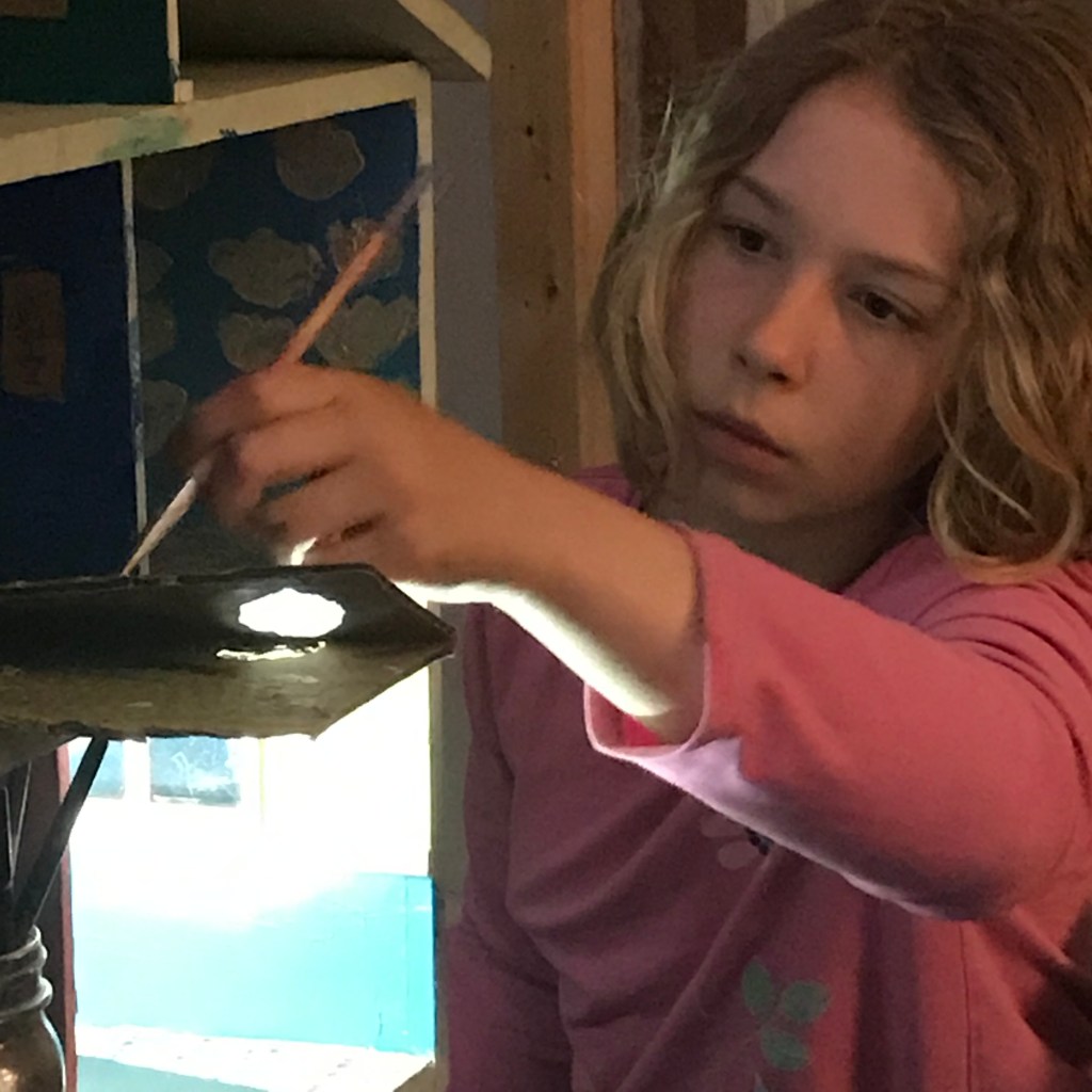 Duende is also excited to have all kinds of backyard games – badminton, frisbee, a ball to kick. And Josh just got her (and him) baseball gloves/ball to play catch. It’s likely we will pull out the horseshoes and bocce soon – keeps us out of trouble. Meanwhile, indoors, we’ve been playing some ‘Destination: Mars’, ‘Sushi Roll’, ‘Taco vs. Burrito’ card games, ‘The Game of Life’ (the new one does not impress me) and busting out some old favorites like ‘Battleship’ and ‘Clue’. We still have not mastered a few of our Winter Solstice games (as our regular game room/table) is packed with the things from the studio (which is being reconstructed, in fact – I think Duende is helping to mud/tape the sheetrock today) like ‘Azul’ and ‘Ticket to Ride’ but when we can find them and that room again, we will family-game-night it up!