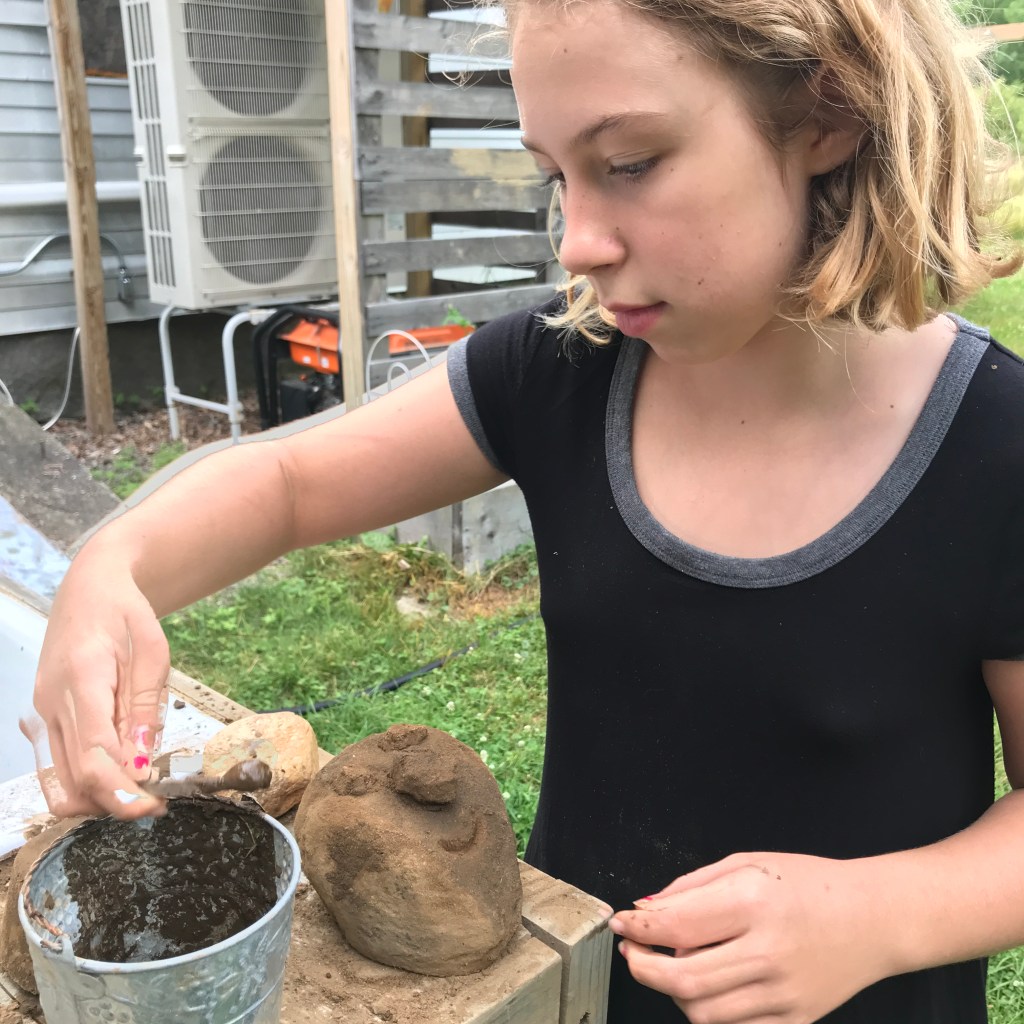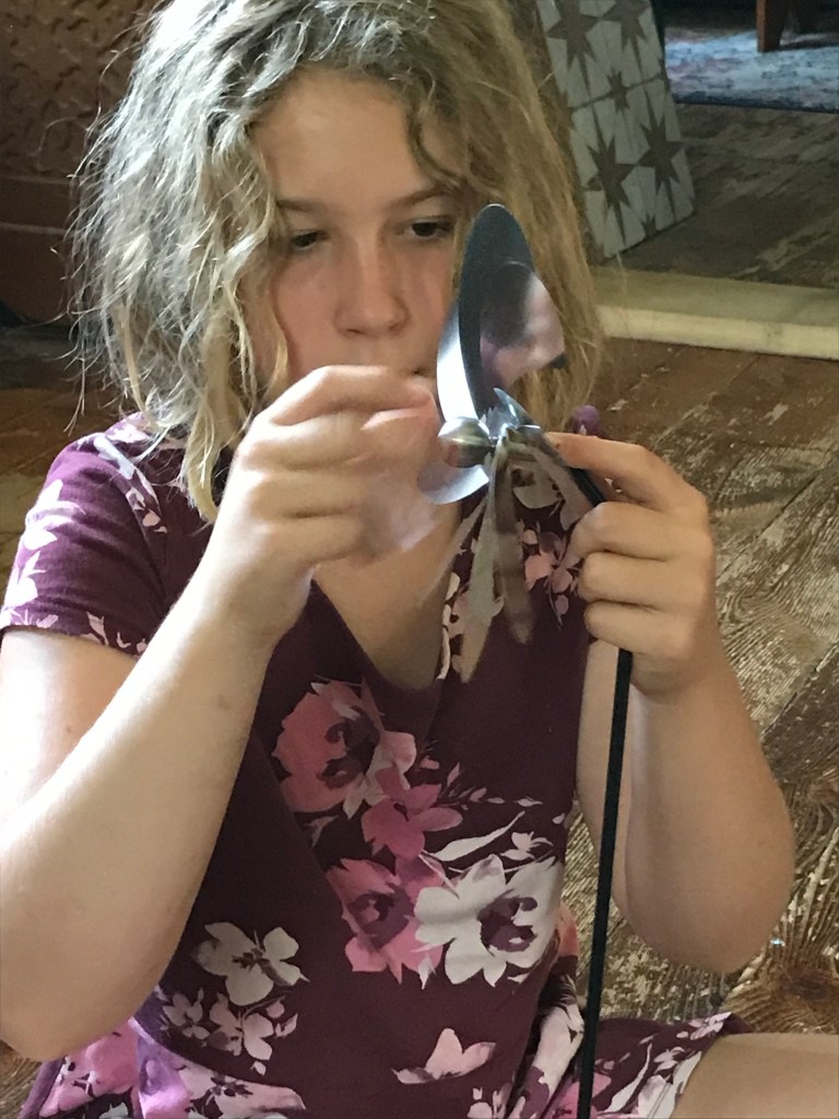 Lately she’s been into her fashion doll collection (all found at the Swap Shop) – making clothes and imagining scenarios. A bunch of her baby bicuspids are loose (I don’t remember losing a bunch of teeth at 11, do you?) and her body is changing/growing. Her balance is different but her funny bone is solid. She’s been reading the lovely cat book Grammy got her, Tribe of the Tiger, as well as her new Lumberjanes comic which she is loving (yay!). She’s really intrigued by a medieval court writer/artist named Christine de Pizan so I bought the City of Ladies for us to read together. And anything about Bastet, the Egyptian cat goddess. We’ve got some big homeskooling projekts to tackle this year – an ‘art from scratch’ plan (making paints/pencils/paper/glue to art with), a nature journal with some real identification markers, locations, and folklore (mushrooms, herbs, rocks, bugs, birds, etc!), some sort of building hands-on projekt (maybe more bat boxes, owl/bluebird boxes, bug hotels)…culminating and cultivated activities that incorporate all the other bobs and bits of skooling (reading/writing/arting/math/science/geography, etc). Sounds like fun!