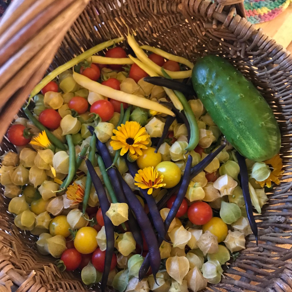 And so we continue to harvest what we can – the grapes failed and we neglected the blackberries this year but we’re getting tons of pole beans/bush beans, husk cherries, and cherry tomatoes. The apples are coming in – too many for us to know what to do with but not enough yet to start something big. We’ve been gathering many herbs and foraged tea material, juniper berries (with a little snake friend!). The Purple Tomatillos are still growing well, along with the Turkish Eggplants, and Wonderberries. We downsized the garden because we have such great local organic CSA (Community Supported Agriculture) shares and Farmer’s Markets and ‘honor’ farmstands that we can focus on the rarer ingredients we prefer or can’t find and by next year, flowers. We shall see – we aren’t in planning stages yet, we’re still enjoying the work around here that needs to get done but we have inklings.