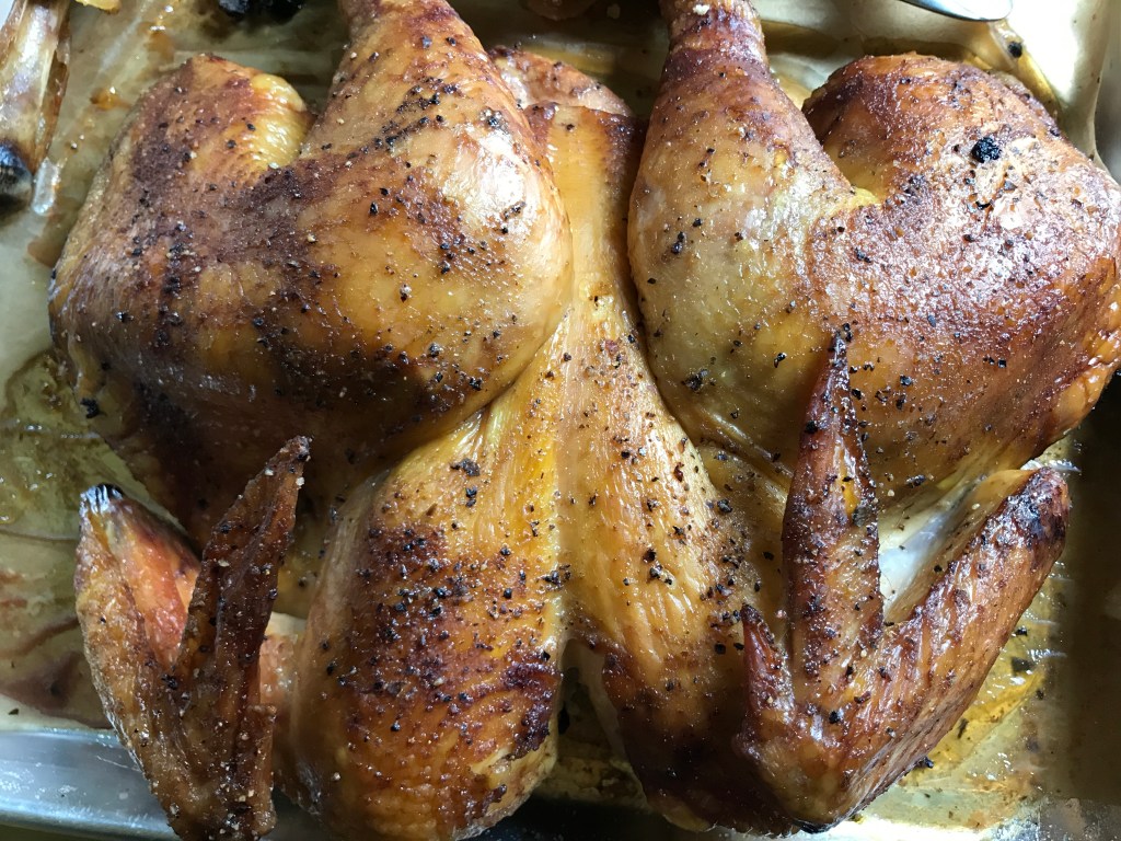 Harvest Time, Freezer Camp, On Permanent Holiday, the One Bad Day; whatever you like to call the end of the food security experiments of raising chickens for meat is always an interesting day. The first year, we did it ourselves (with gracious and more experienced friends to help) because y’know, if you can and you think it’s important, you should, at least once. It was terrible – of course it was! But mostly because our process wasn’t as efficient as it could have been, it took forever to harvest a dozen birds. In our defense, we’ve never done it before (I was around it a lot as a child, but did not participate), it’s hard work, the first year we also raised Cornish, which are not birds for small farmers or homesteads (or really anyone, they are bred for CAFO’s and it shows – they grow too fast for their legs resulting in breakage, and if that doesn’t happen they still get so lazy that they can die of heat stroke because they are 3ft away from the water, and thus – more fatty and not as healthy. If the animals aren’t happy and healthy, and yes those things are related, then the food won’t make us happy or healthy), and we likely were just unprepared. Then we found out our town is one of maybe 3 authorized processing facilities, family-owned. When we took our 20-25 Rangers the next year (and ever after), the process was so quick and friendly, efficient and affordable – it was marvelous.