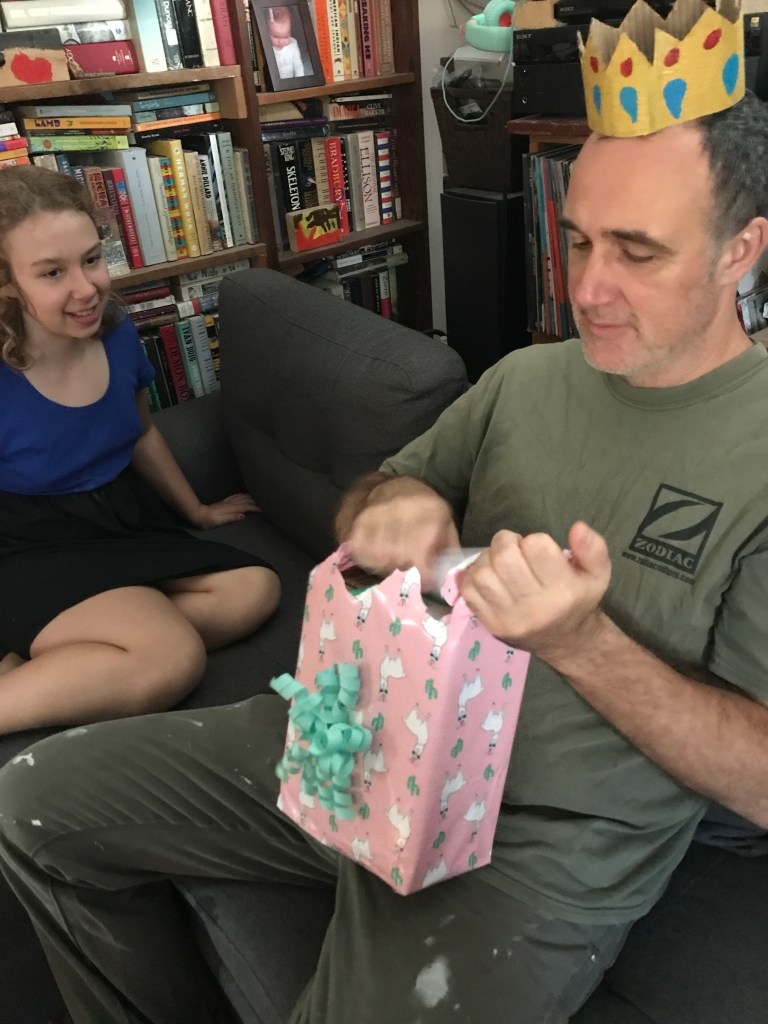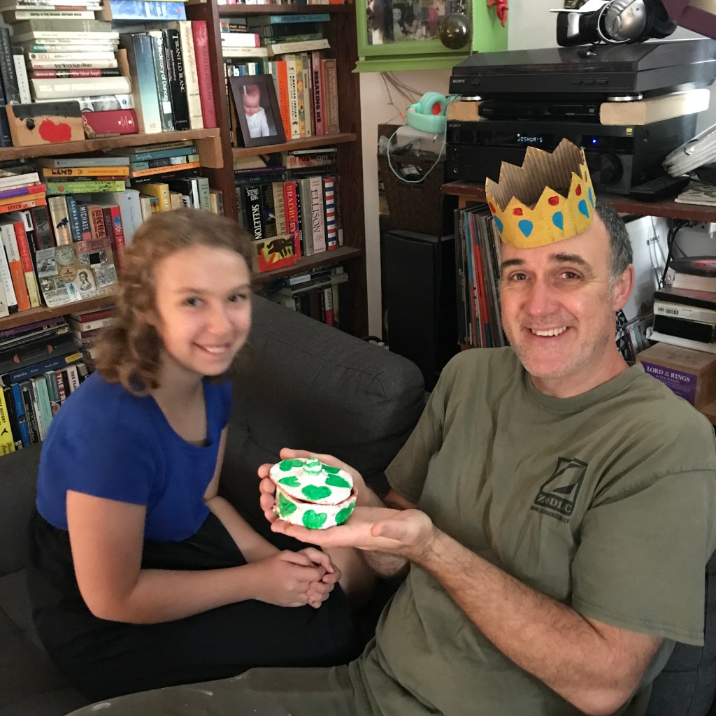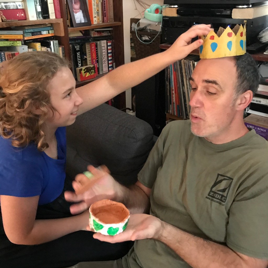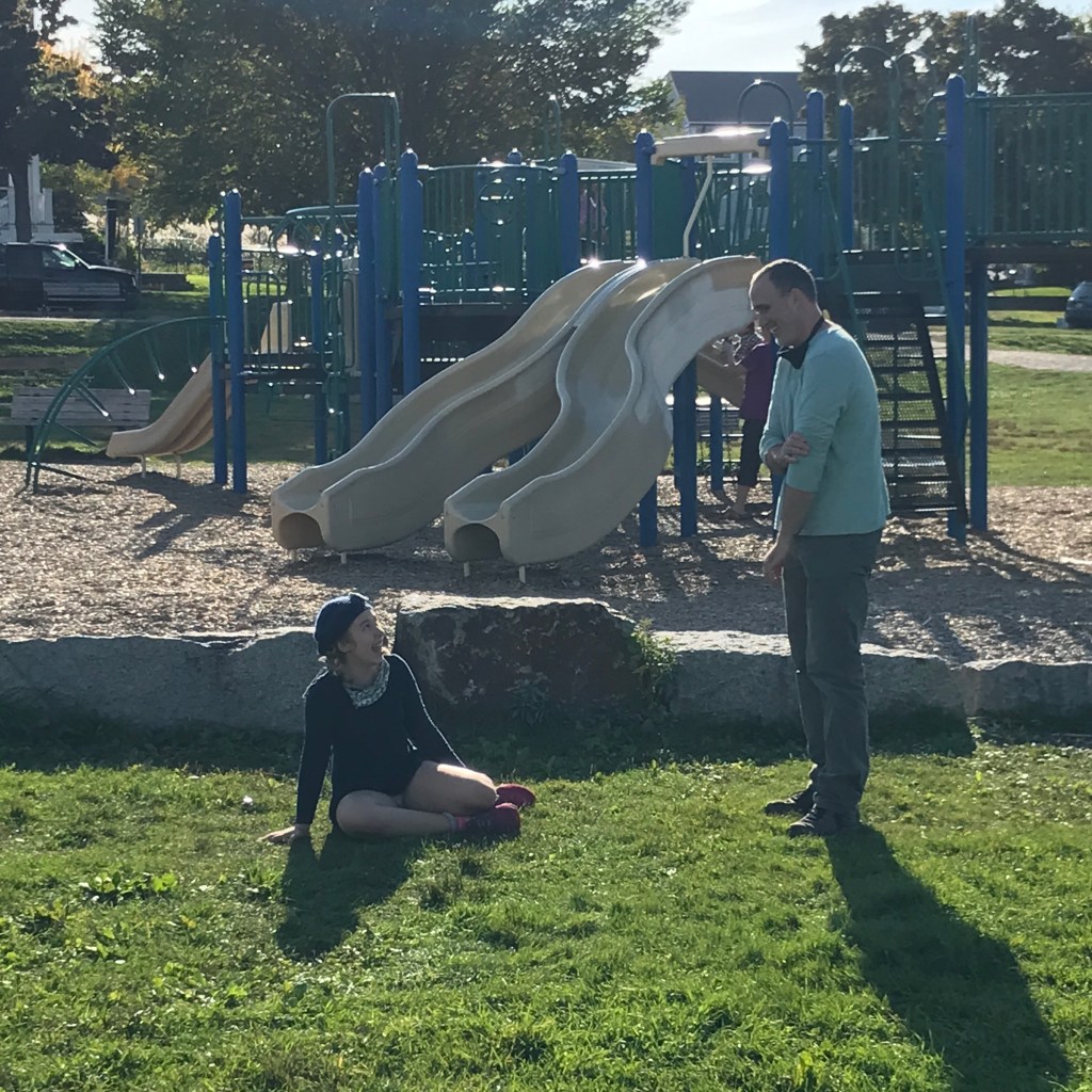 Amidst our restructuring and refurbishing, D has found time to literally ‘make’ some new friends, too – like this crazy ‘gator, and her ‘flugelhorn’, and a birthday crown and clay bowl for Daddy. We managed a day down to Portland to see our lovely friend Justin off on another far nursing adventure, then we hit the East End park for some food truck Gelato and a little swinging. As much as we’re glad not to live in town anymore, we still miss the quiet neighborhoodiness of the ‘Hill.