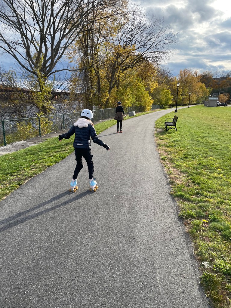 Here’s to new friends! Especially at a time when it is particularly hard to meet new people and to have the space to get to know them. But children are brilliant at that, anyway – no expectations, no messy introductions, they just sort of jump in and figure out whether or not it’s a decent match. Seems like a lesson that adults are likely to continue to ignore but I find it inspiring. So, Duende met another little gal at the Farmer’s Market (her family are local meat farmers; beef, chicken, lamb) and they seem to hit it off – D has an extra pair of skates (the next size, from the Swap Shack!) so they were both able to skate at the park. Supercute (and look how dramatic the sky was yesterday)!
