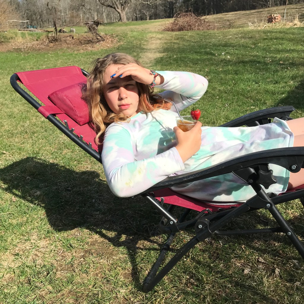 Other exciting news – she’s excited to be in the front seat! She’s excited to be back outside for games and relaxation! She’s excited to be traipsing around town and country! Here’s to 11 year old excitement!