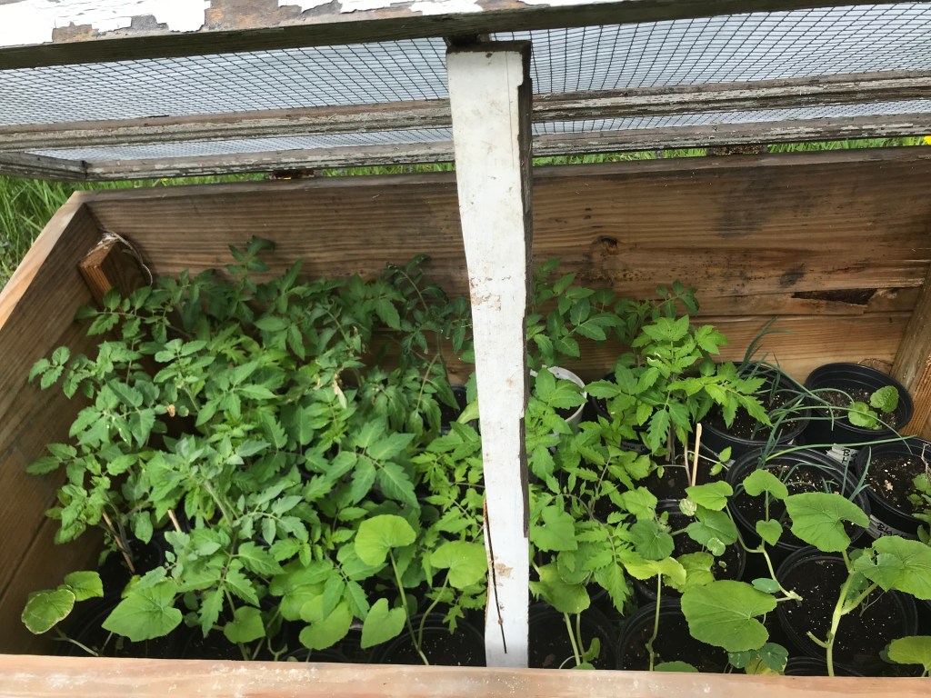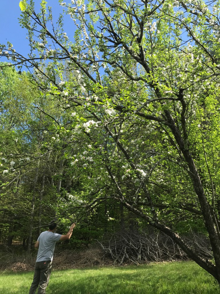 Right now we are just excited that many of the baby Apple trees we have planted over the last couple of years are blooming. It’s an off year for the big trees but the little ones are looking pretty good despite the incessant drought and bug plague they have been struggling through. The baby plants are also looking good and can’t wait to get into the new garden – still a few finishing touches (and a fence) but we’re almost there; the coldframes are bursting! But we did finally get a first Asparagus harvest after many years since starting from seed (and the fear that the deer dug it up last year, though none of the Purple came up, perhaps they will return) – YAY!