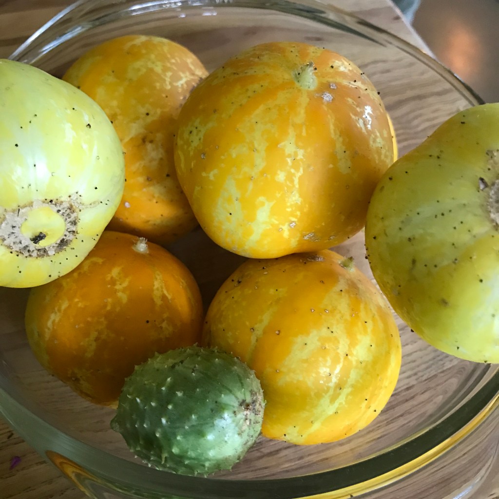 - 2 cups chopped heirloom Tomatoes (if cherry, I cut in half – choosing to seed tomatoes is up to you, if you do you could also set some aside in a jar to ferment and save seeds for next year)