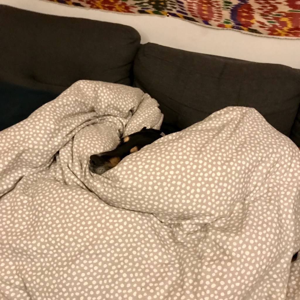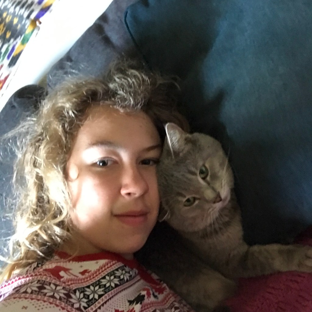 But we got another anyway – the kid was so sad, we went local and got a little boy cat from a mixed litter. He was crazy and now he’s neurotic. Most people don’t even know we have a cat because if he even catches a whiff of another human he’s hidden somewhere deep upstairs for hours and hours until they go away – if they stay the night, he sneaks down in the dark and takes care of himself and then stashes himself away again. A couple of years ago D decided the whole family needed matching Solstice pajamas (including the cat & dog) so I complied because it’s weird and funny. I just found the cat’s pajamas (my favorite saying ever) in a buried corner of my closet after 2 years, he maybe had them on for an hour – we were seriously considering that maybe he ate them.