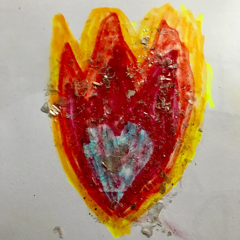D is in full Samhain-swing. We could not find our big blue spider decoration friend this year (lost to the corners of the attic?) so she made her dolls into ‘scary’ situations (and they were really scary, she is not a delicate child! Aaack!) and drew up a hundred snakes and ghosts to put around the house. We need to find a jack-o-lantern pumpkin soon. Right now she is obsessed with pop up scrapbooking, resplendent with mica sparkles, yarn bits and felt, drawings of cats and fish.