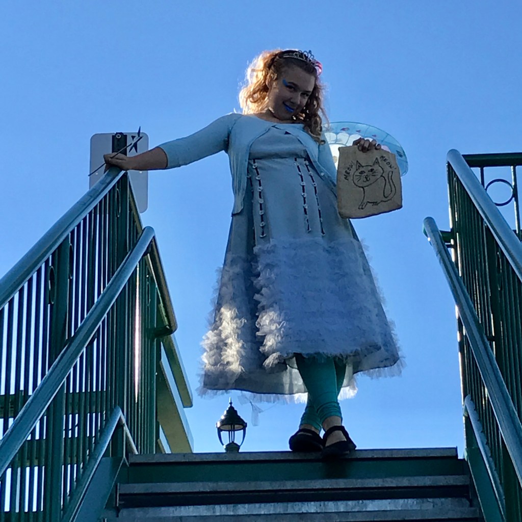 She has a good time running around in the dim light with friends, dressed up (which is always a thing, and we never buy ‘costumes’, if costume pieces come into our lives, go for it – like these wings and the tiara) and I try not to look as she eats small amounts of toxins. Perhaps a side tradition of Samhain is not just to honor our ancestors but to toy with death on a slight scale (now you can hear me rolling my eyes, can’t you?). This year she hit Water St in Gardiner for the store trick or treating; it was quite a turn out. She was pleased.