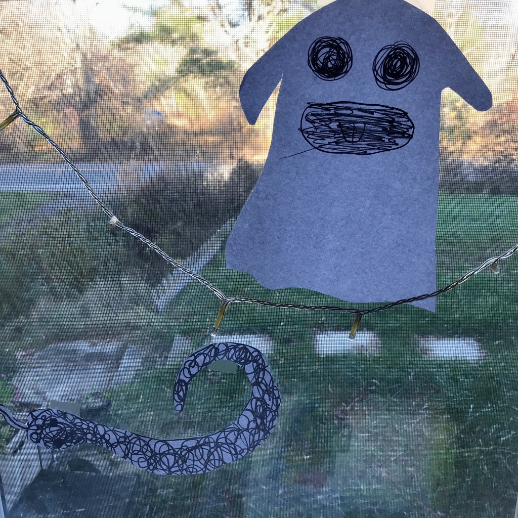 She’s been helping at the new store – washing windows, helping to scrape off window tint, onto mudding and sanding sheetrock, and then painting. In her off-time there she plays with her matchbox cars and marbles across the smooth clean floor – she’s going to be disappointed when we put bookshelves up! She’s loving her ceramic classes, she’s made a couple of bowls and this stunning lady with one arm (she’s got a story!) and has been arting up a storm: new close ups and characters, carboard spas for tiny dogs, paper airplanes and decorations galore. She’s onto a new tree identification project for homework, sketching leaves before they disappear, marking identifiers, reading Akiva Silver’s Trees of Power.