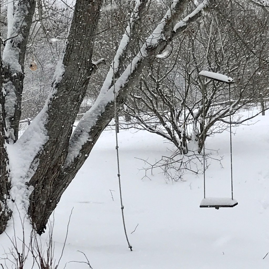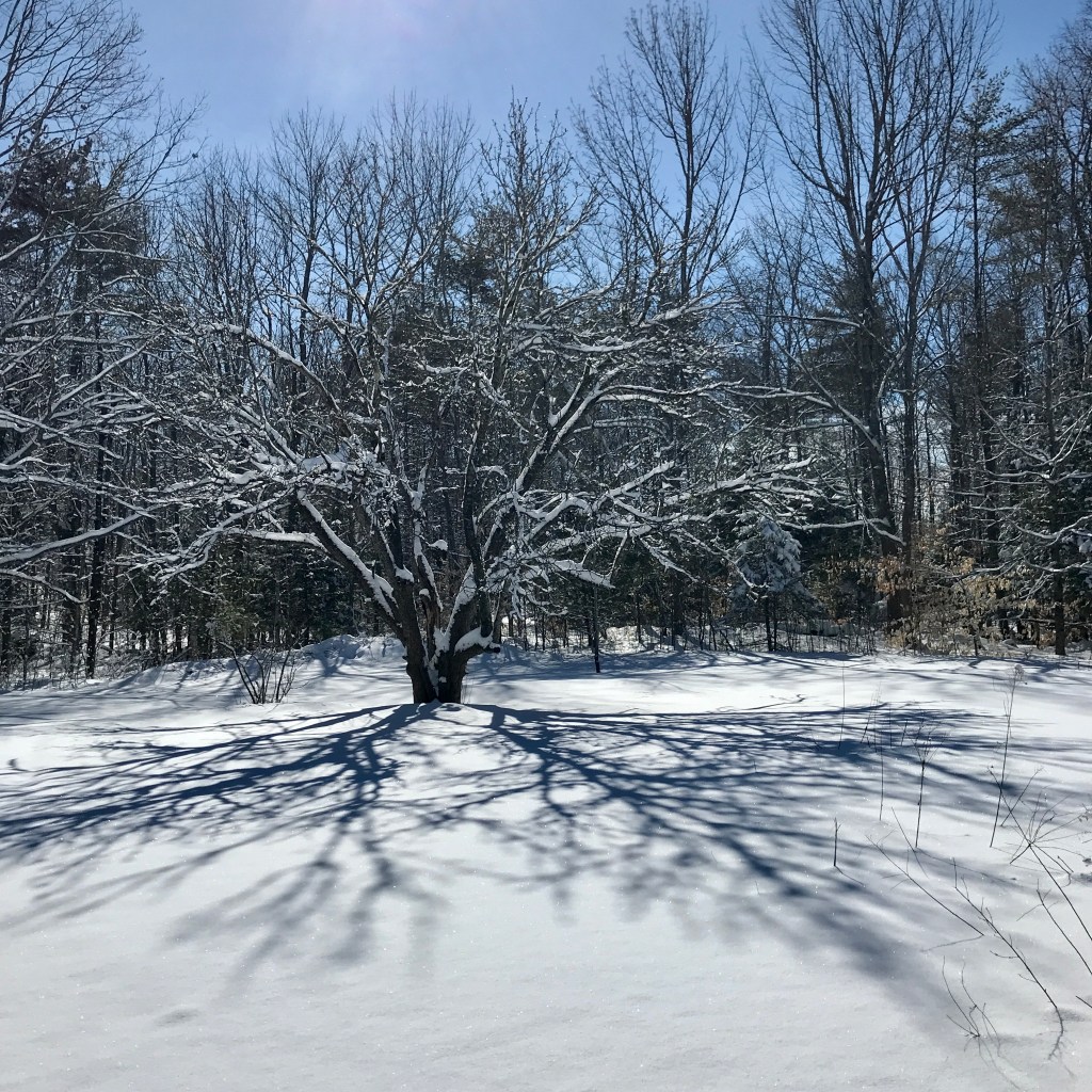 Meanwhile, the sap begins to flow, the wild seeds retrace their collective growing memory, and the salamander who lives in our basement hides and seeks. The birds – I’ve been spying titmouse, nuthatches, chicka-dee-dee-dees, crows, and even a small flock of robins, they snuggle down in the night. The fire turns to warm coals. I return to sleep for a family dream where the full moon keeps us connected.