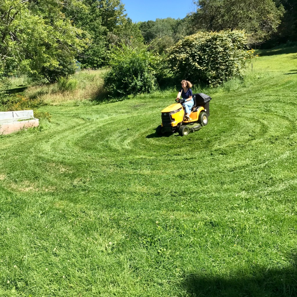 Then we put in a swale at the top of the hill (from a possible spring or just a thoroughfare for the winter melt) to stop the water from pooling in our backyard and overflowing into the basement. We moved the garden down the hill further and made it bigger, in the last couple of years we added more veggie beds and beds for flowers, a giant pea trellis, a pumpkin bed and doubled everything. We tried a couple of grain beds (they failed) and a fenced in circular dye/medicinal plant garden (which failed). And tried to sell flowers but it wasn’t for us. Despite 3 years of drought, many of the fruit trees and friends survived (definitely had some poor casualties, drought brings other struggles like more disease, pests, and well, drought) and then this year it’s been a rainforest!