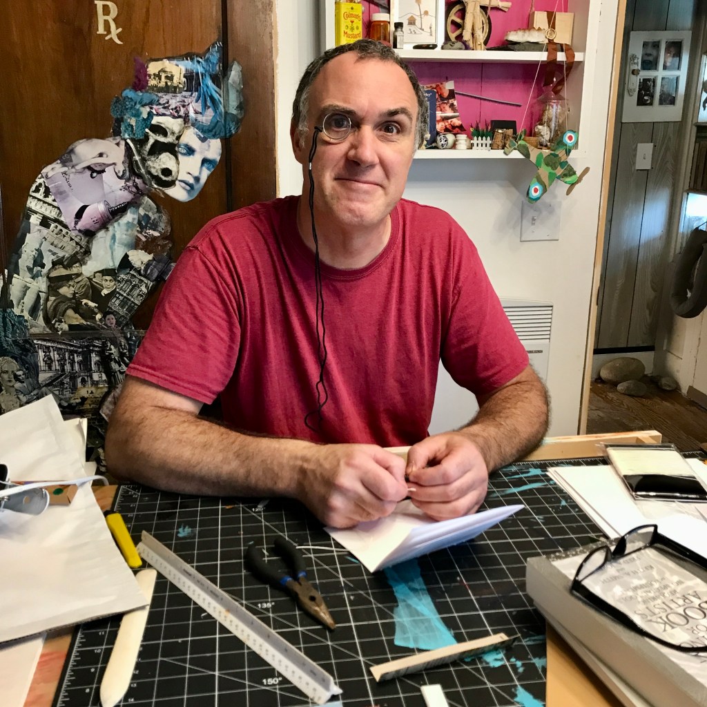 - Now that I am done with my dissertation (on aesthetic philosophy, anarchy, and ecology), I can focus a bit on my art practice. We’re arting together as a family (family art nights!) which pleases me ridiculously — J on his bookmaking, D on whatever projekt she’s excited about (cardboard technology is the new theme and she’s getting ready for a new cycle of pottery classes), and my work with wild apotropaic.