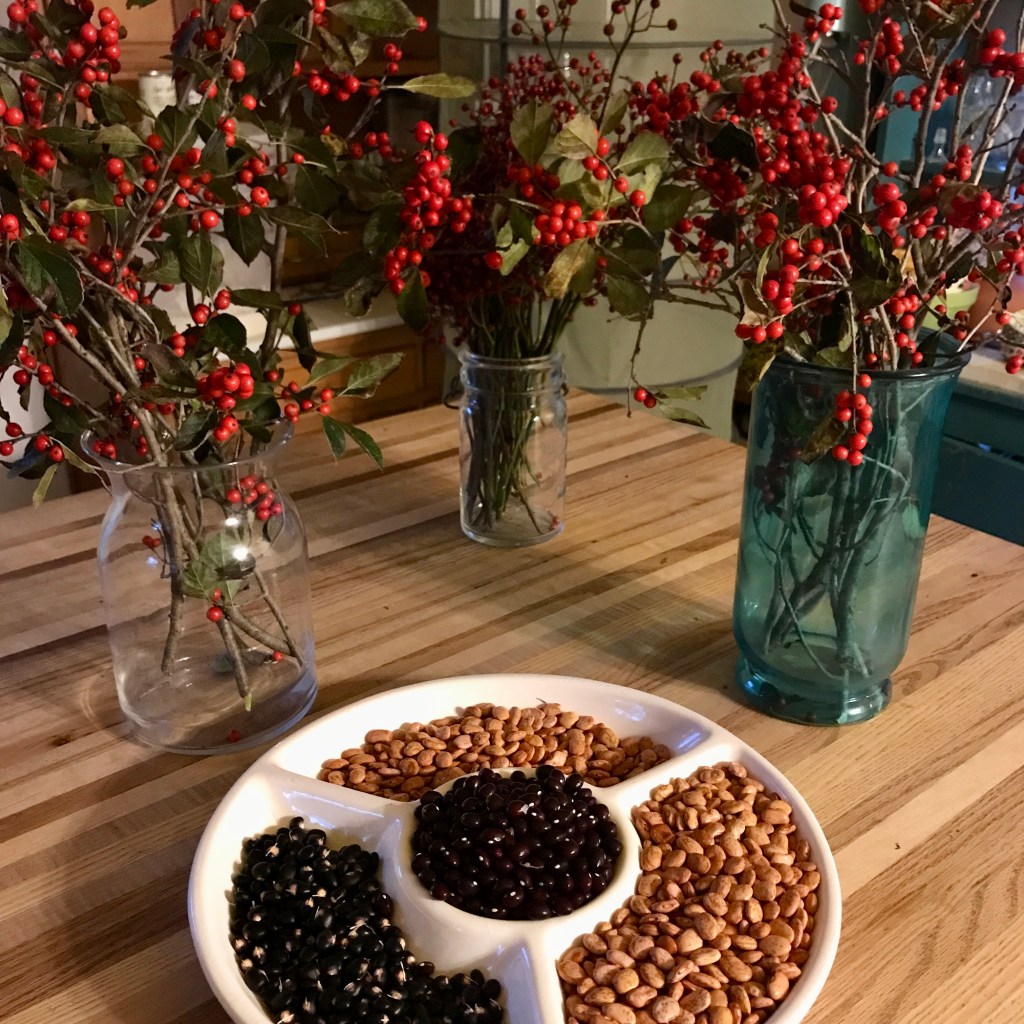 The chill is in the air. The bee balm seed heads sway with frost, the leaves on the peach trees are finally giving up, the witch hazel has had her last bloom for the season. We’ve shucked the beans (such glorious beans — Doloff, Purple Podded Pole, and True Red Cranberry Pole Beans), dried Calendula, and collected tiny Multiflora rose hips. My guilt for the neglected gardens gives way because now there is nothing I can do — what’s done is done. Onto other things like festivities, a breather before next year’s planning.
