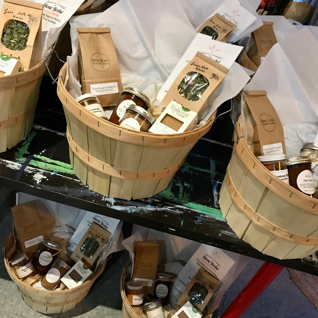 Until then, Doris (the starter) bubbles away and builds the beautiful breads. We will keep buying the small press books that make us think, put together gift baskets, and hope the woodpile holds out.