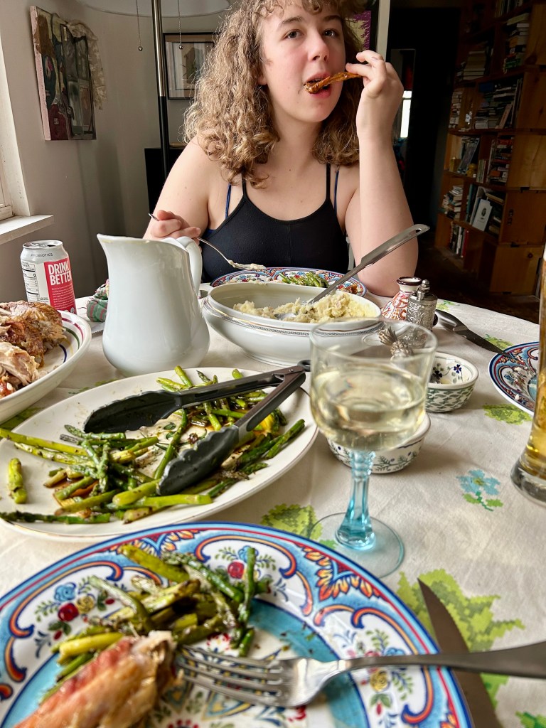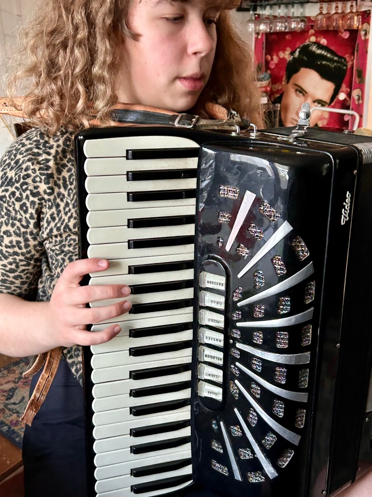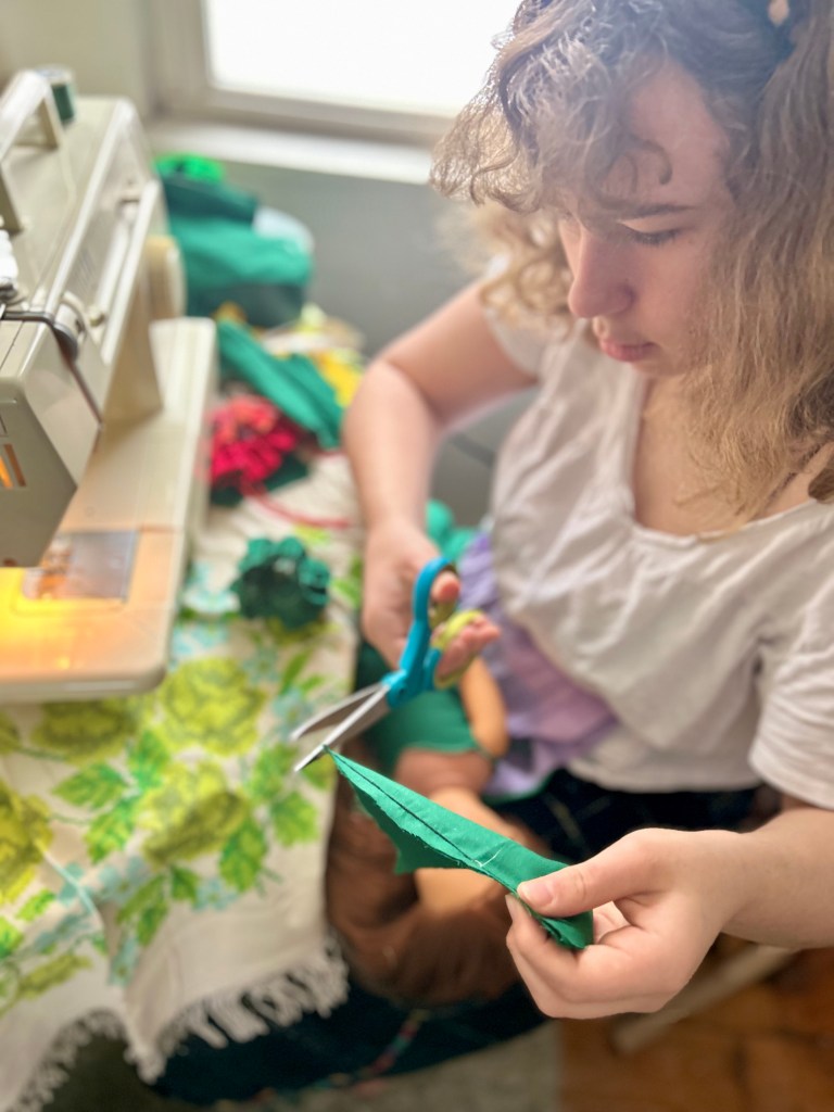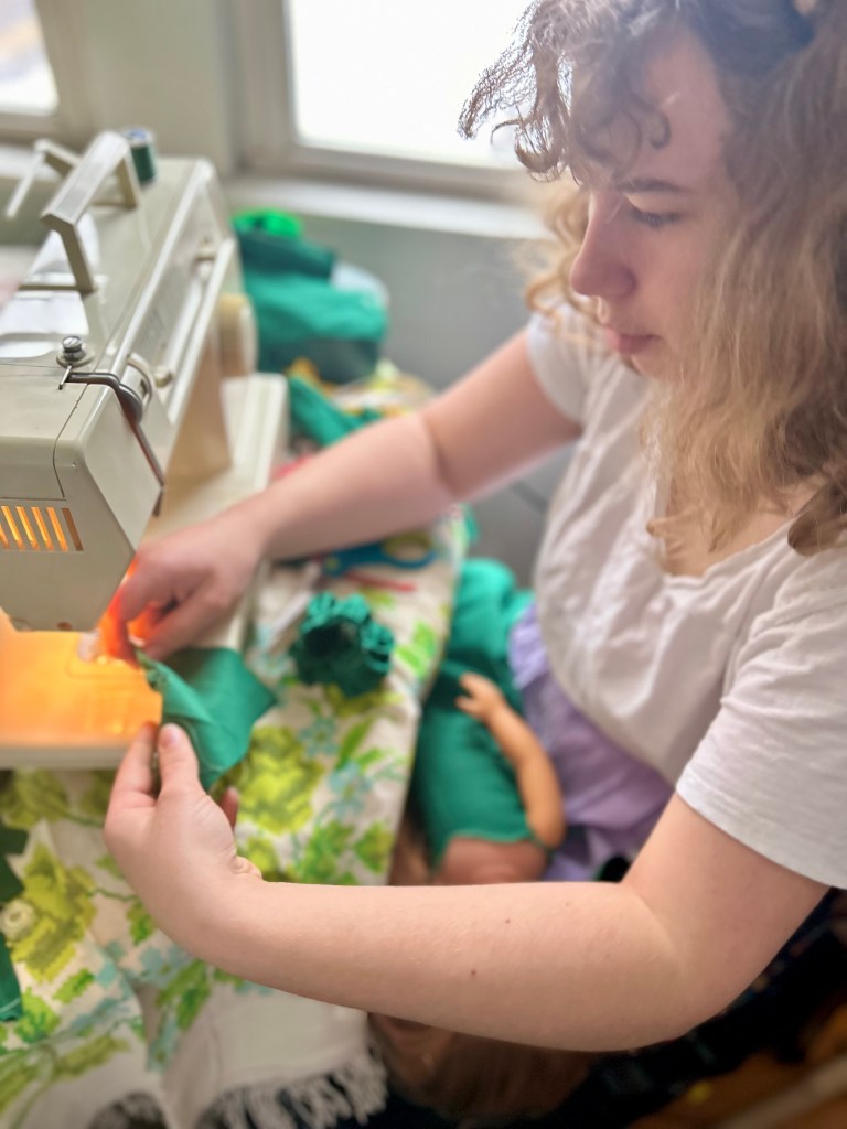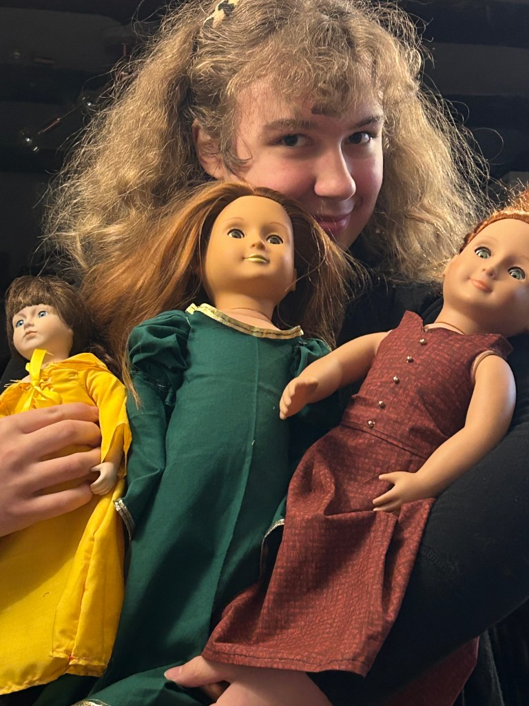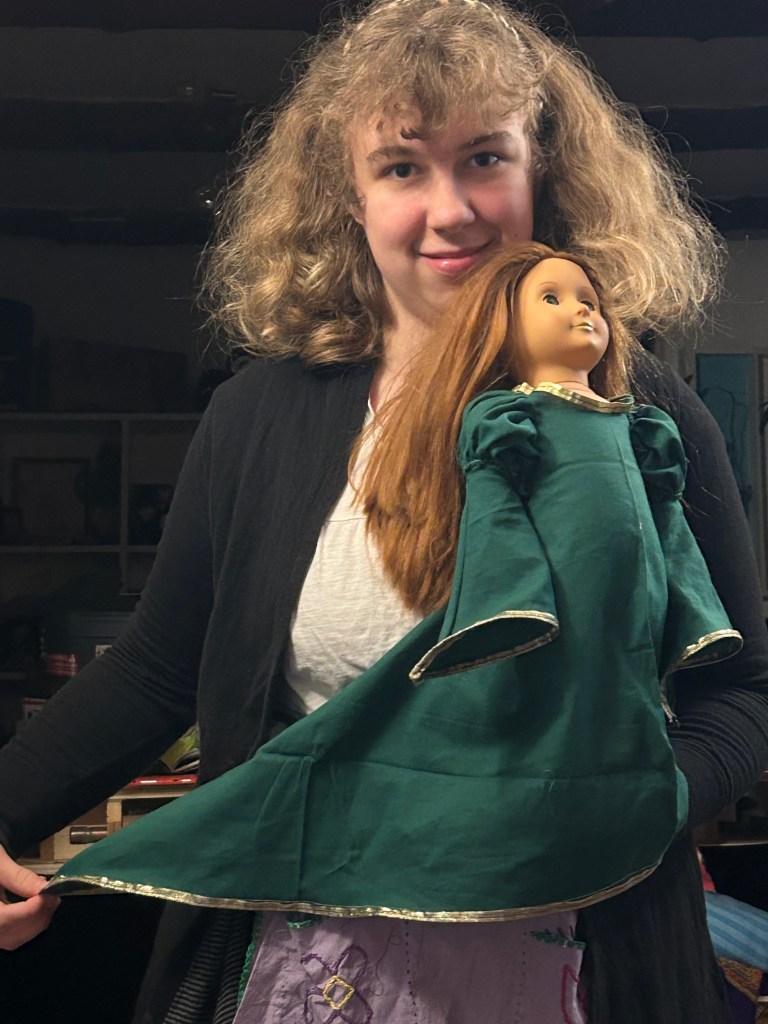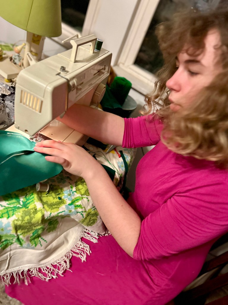 We are quite happy with the person she is becoming. Duende is amazing. She’s (wicked) funny, never cruel, and always considers the feelings of others. She’s adventurous and loves to develop new skills in the things that spark her. She’s smart, she has a great logical mind and comes up with creative solutions to complex problems. She’s always learning new skills. This week she learned to use a maul for chopping wood, started using her sewing machine (and learned many skills there — designing doll dresses/gathering, shaping, trimming cloth while watching the historic costume show), cleaned up the dooryard gardens in time for the storm, baked an entire turkey dinner (stuffing the bird with herbs and rubbing with garlic butter, making biscuits and gravy, roasting veg, etc), starting a watercolor series, deciding she wants to learn the accordion, and somehow still playing way too many cat games on her phone. She’s worked out some new (and crazy acrobatic) dance moves and helping out a lot lately (cleaning, organizing, running independent errands, learning how to hook/unhook the generator, etc).