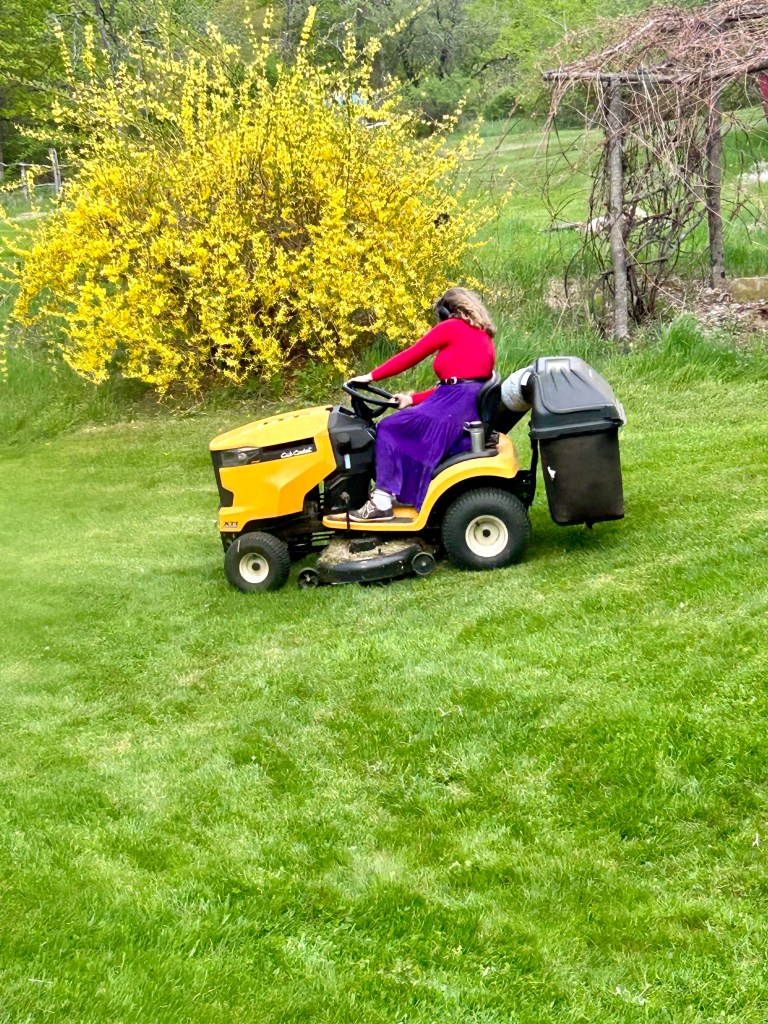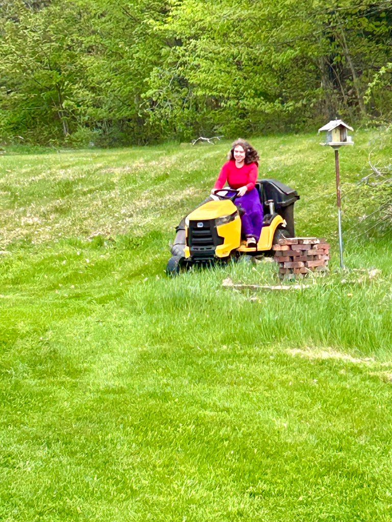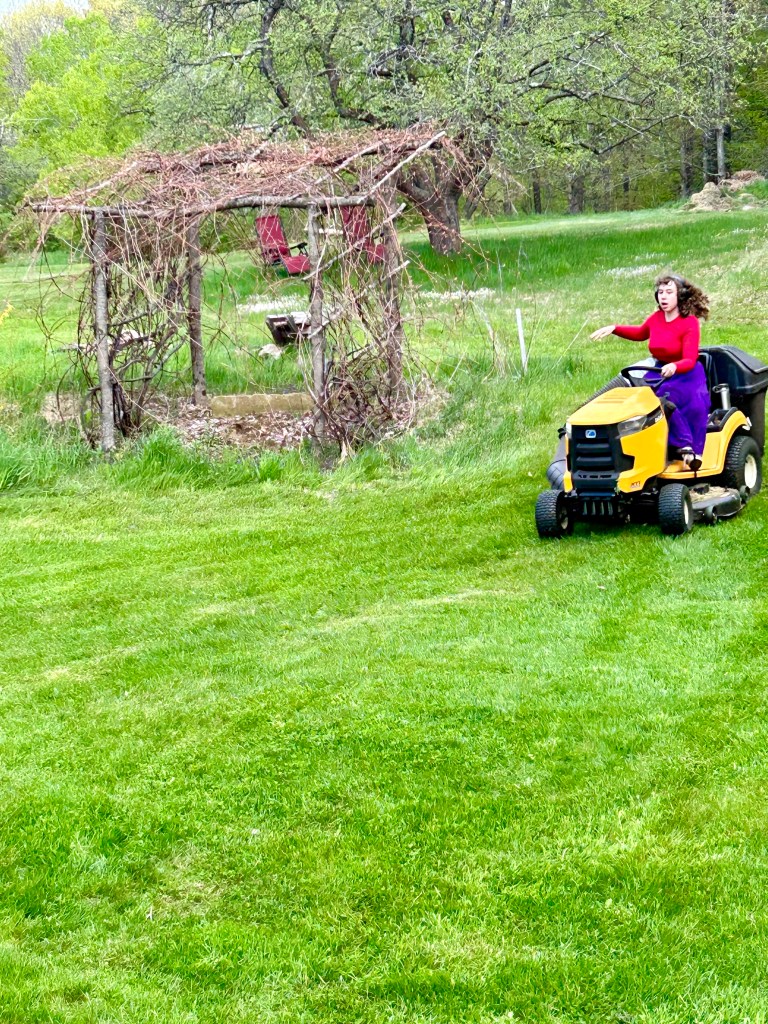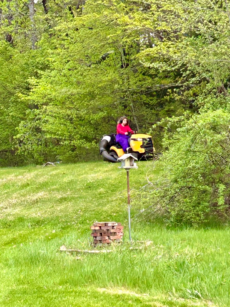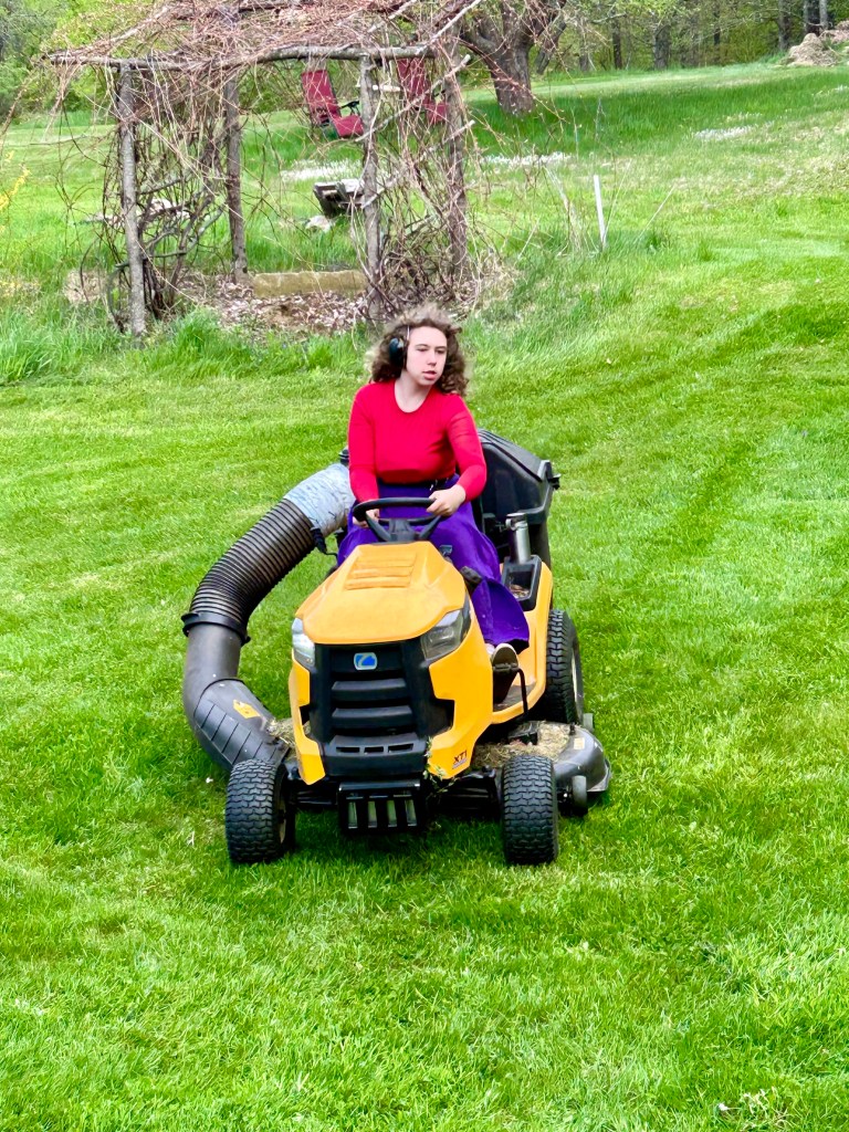 Until then, she will be roller skating around, doing her thing. She loves both the sociality of downtown and her studio time where she sews doll clothes or now clothes for herself, draws more fashion or lately practices wild animals, or beads, knits, writes stories, watercolor paints, etc. She’s also loves outside, lately she’s been practicing archery with J, mowing the lawn (which means her rocking out while driving as fast as possible and hopefully the grass also gets cut), and running around like a loon. Much of her time is spent dancing though — her dancing is vigorous and amazing.
