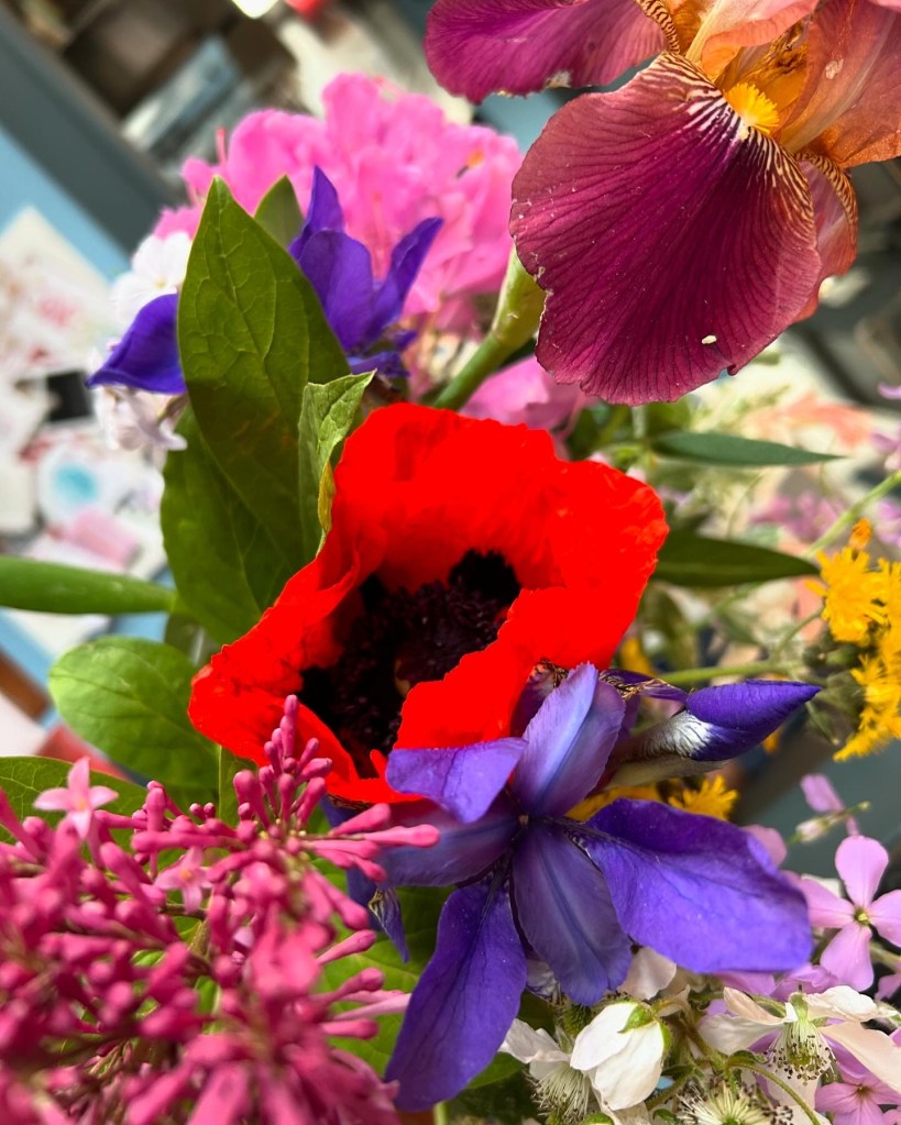 Meanwhile, the Sage blooms, the late Lilac entices the Swallowtails, the Peas grow, the Peonies open, the Multiflora Rose hedge gets ready for its yearly debut (only lasting for a week) and I will get the rest of the Beans in today, the Pepper plants, seed the Tatsoi/Pak Choi bed, put up some more Tomato buckets (going for buckets this year, we’ll see), plant the rest of the Calendula, the Dahlia, the Strawflowers, Celosia, Gomphrena, Poppies, and whatever else I have as little babies (many herbs: Horehound, Basil of 6 flavors, Ashwaganda, Feverfew) and seeds (Sunflowers, Chamomile, Thyme).