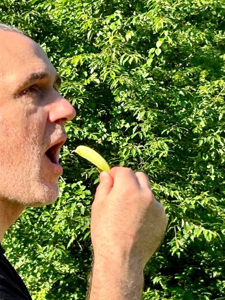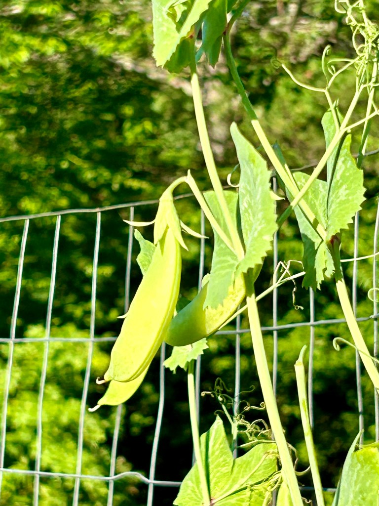 We’ve already made this salad a couple of times, it’s so good. I’ll probably wait a couple more weeks and then seed peas again for a Fall picking. Meanwhile the rest of the garden is catching up to the peas — the Ground Cherries have already bloomed and are making fruit pods, the peppers are standing tall, the Tatsoi and Purple Pac Choi are growing nicely in their sweet little rows, and the dry beans are starting to vine. The corn is maybe knee-high to a 5 year old but that’s ok, it’s a shorter strand (and I probably got that in a little late, too), but the tomato plants in buckets are huge! I expect great things.