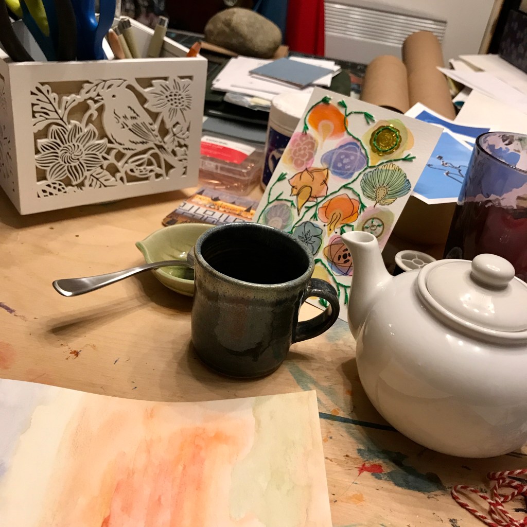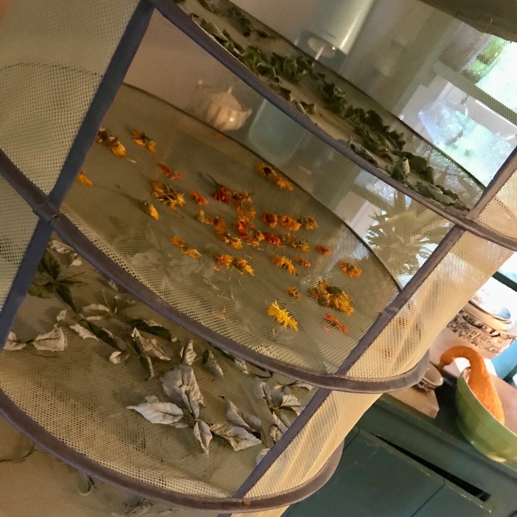 We’re drying herbs and flowers for teas and bath soaks. We’re focusing on game nights, family art evenings, and pizza dinners with whatever is in season or comes our way (my Mom showed up with a pineapple the other day, and then a lovely customer showed up today with the most magnificient maitake — thank you so much).