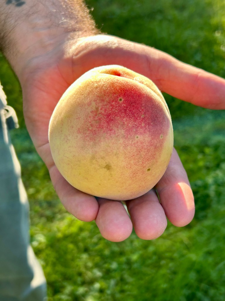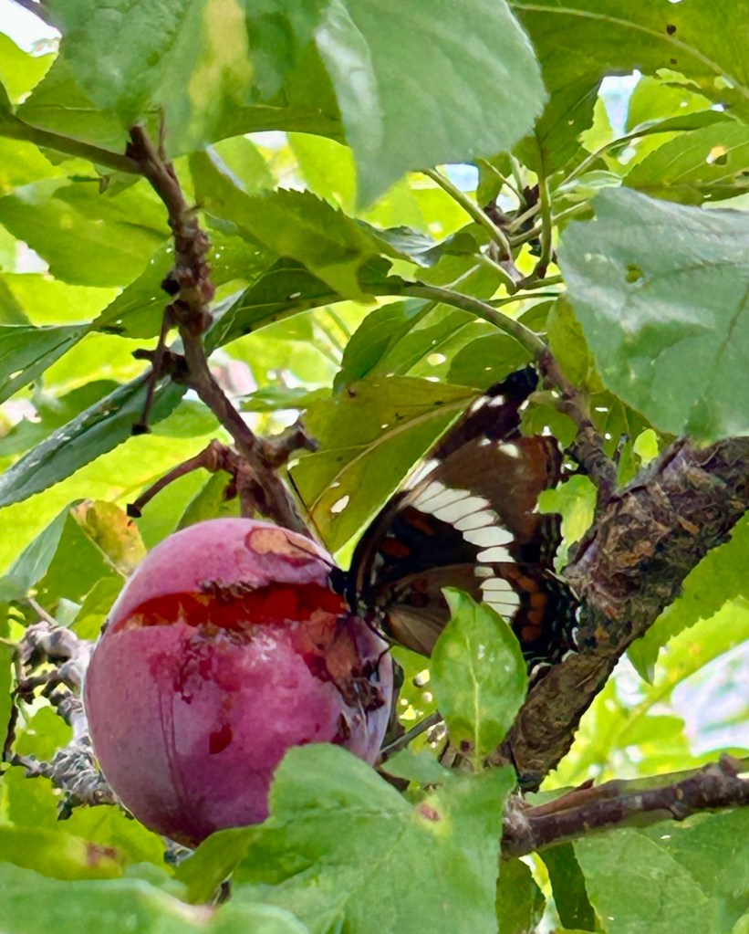 We’re finishing off a batch of Carmelized Peach Butter with Honey & Vanilla this week from our peach which we think is a Lovell (we actually grew a different variety but it died and the Lovell rootstock took over). It grows lovely smaller and harder but no less delicious peaches (probably great for just canning straight-up peaches) than our Garnet Beauty. We got about 30lbs off each tree this year. We sliced and froze all the Garnets for crisps, oatmeal, pancakes, upside down cakes, etc all Winter. The plums took a hit in the Spring from a heavy wet snowstorm and though it is not dead, it needs some heavy pruning this year and then maybe it will bloom at the same time as the other plum (the other plum managed to have a couple of baby plums but ants took over — I’m not enjoying the plum trees as much as the peaches and pears, they seem too high maintenance). We’re still not sure when to pick our pears and might jump in this week as we have 2 (out of 6) that are heavy bearers though they don’t look like they were fully pollinated (they have lumpy little faces). We shall see.