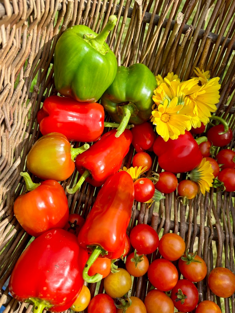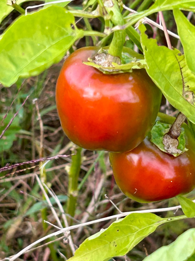 And we had plenty of herbs, flowers, and Asian greens this Summer (we prefer Tatsoi and Purple Pac Choi — they are yummy even when they bolt and the deer don’t seem to know what to do with them so they leave them alone). We had volunteer Cherry Tomatoes (which I have never seen before!), early Snap Peas/Snow Peas, and Peppers. Most of the beans and the second round of peas were eaten by the deer (because we didn’t get new fencing put up this year, we were hoping for wattle but that got away from us).
