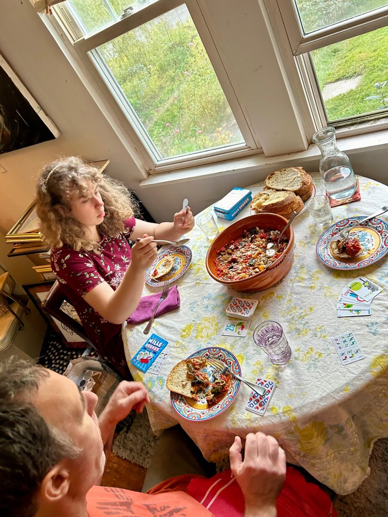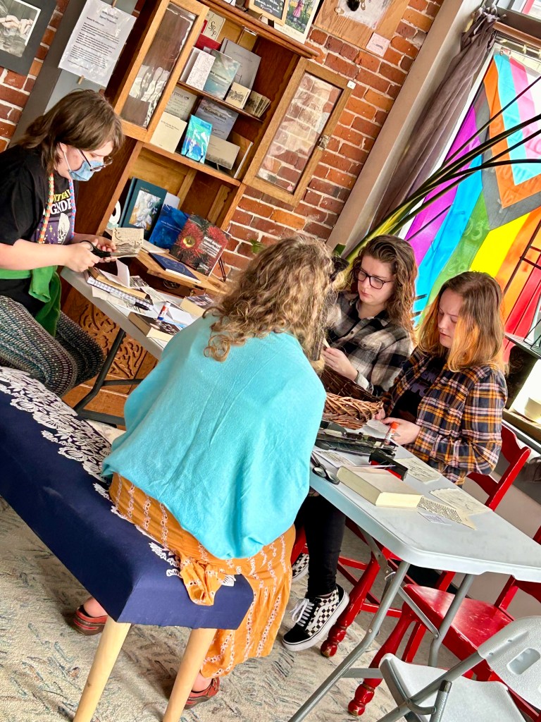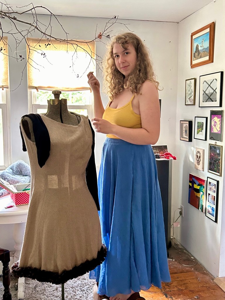 Lately, she’s been trying to squeeze in both sensibilities — all the school work but then also designing many costumes (making her own patterns, lining fabrics, using her dress form, handsewing, machine sewing), drawing beyond the assignments (Victorian characters, idea-mapping, watercoloring drawn landscapes), baking/making much food (busting out ramen bowls for J’s b-day, with roasted veg and marinated beef tips), participating in ‘zine making workshops at the shop (they did blackout poetry this time!), wytching it up by building herself a nature/apothecary/altar, sitting around having conversations about Plato’s Republic (and clarifying how the misinterpretation leads to Freud’s penis envy and the Monroe Doctrine), early American history (Salem witch trials/aka critical thinking suppression and oppression of women, and eugenics specifically in the history of Indigenous peoples), financial literacy (and commercialism, taxation, and fiscal responsibility), astronomy and the recent views of the Northern Lights, the Tsuchinshan-ATLAS comet, and the Harvest Supermoon, war and conscription, and our usual talk about the importance of food sovereignty and security, hanging with other amazing women, and playing family games.