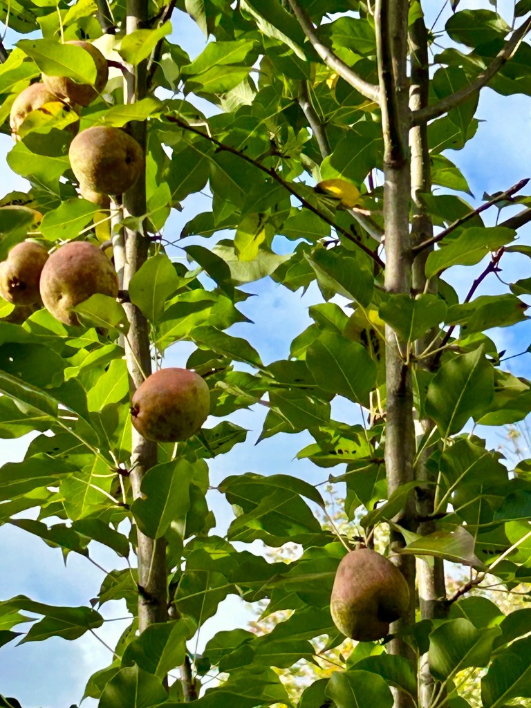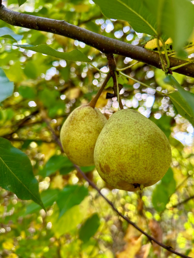 There is certainly a shift to the light lately, and of course, the astrological shift (we’re feeling that a lot) = the seasonal changes. The Ash trees have already let go of all their leaves (we have one in the drive and one by the sugar shack), and the Maples are changing, but the grapes and forsythia in the yard are still full and green. It is an off-year for us with the apples (just a few here and there), but our pears and peaches are plentiful. It’s good to have fruit that alternates years so we aren’t struggling to process everything simultaneously.