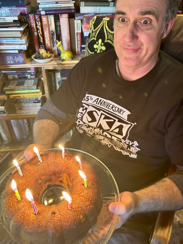 We managed to celebrate J’s big b-day with homemade Sundaes (with hot fudge, peanut butter sauce, whipped cream, sandwich cookies, peanuts, graham crackers — the works — because all the ice cream shops were closed for the season! How we managed to find all of our goodies in a clean sensible fashion is amazing! Thank goodness there are some food companies who care.), and a Ground Cherry Bundt cake.